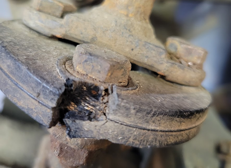You are correct, Jim. The originals had a fabric layer or two that were overloaded with the rubber. Here is a shot that you can see the layers of fabric where the rubber has crumbled.